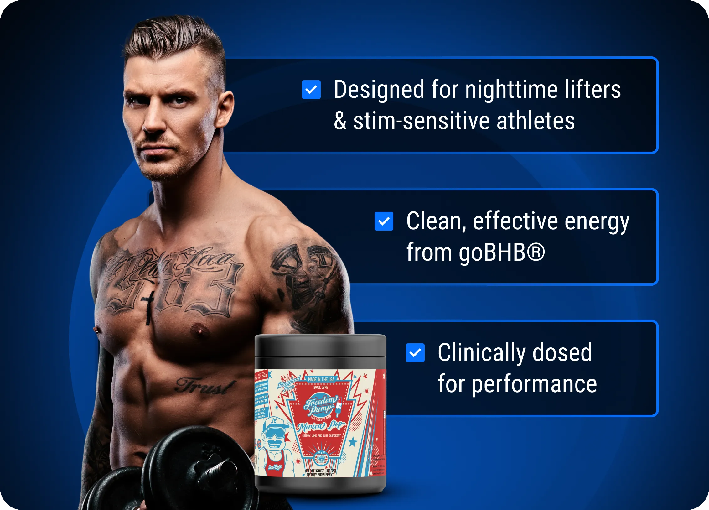 A purpose-built pre-workout that delivers real energy, massive pumps, and deep recovery, without a single milligram of caffeine.